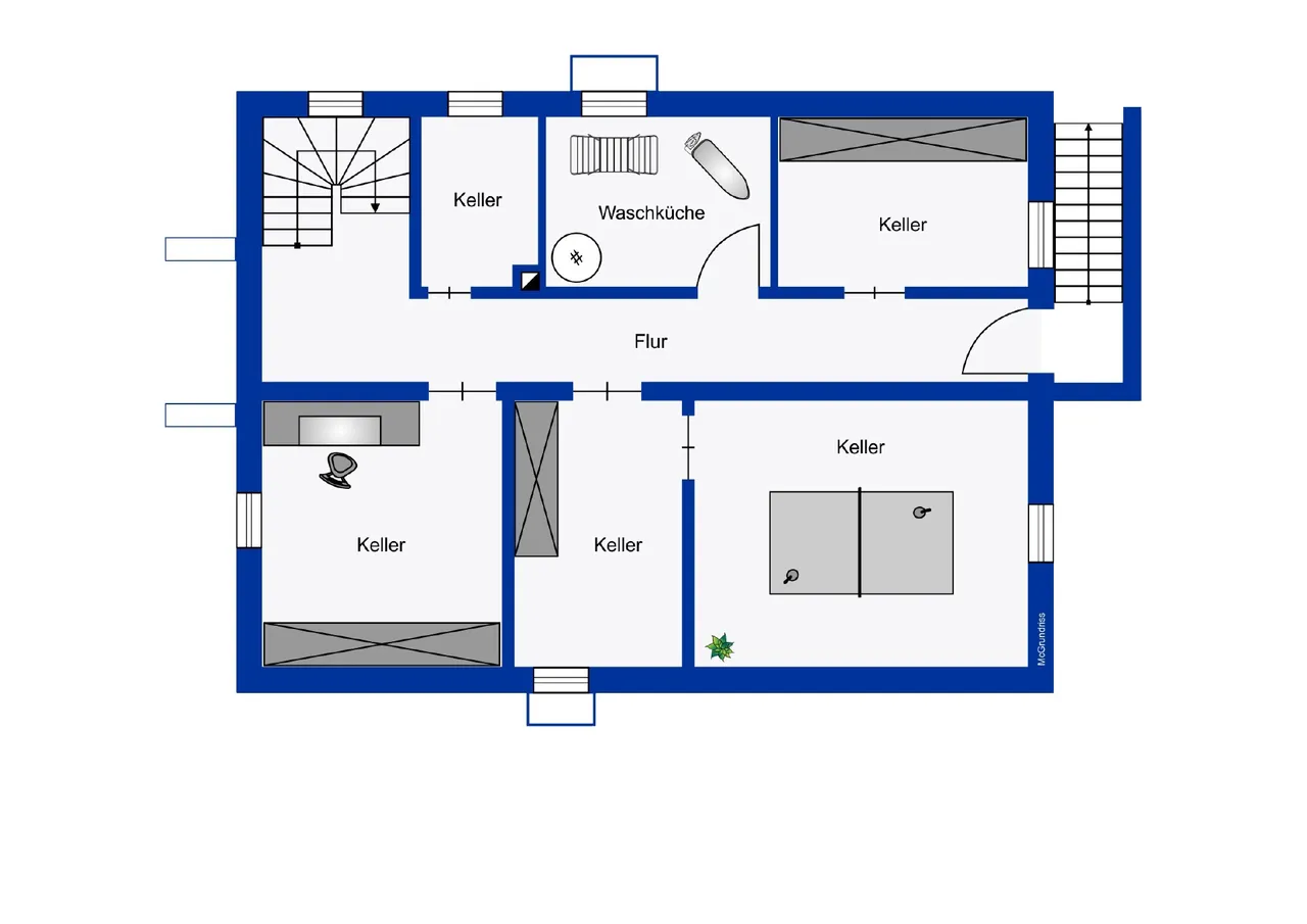 KG: vollständig unterkellert, Kelleraußentreppe;