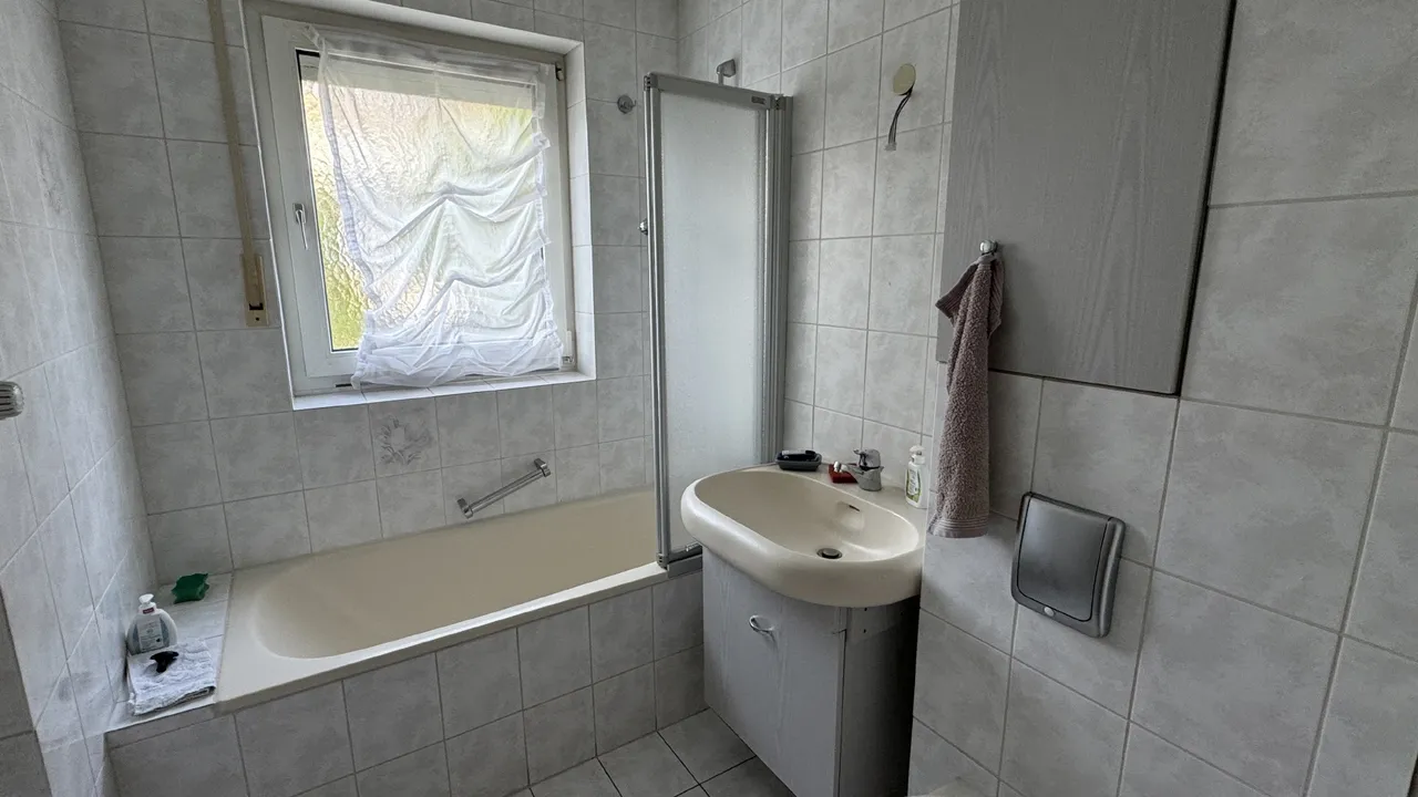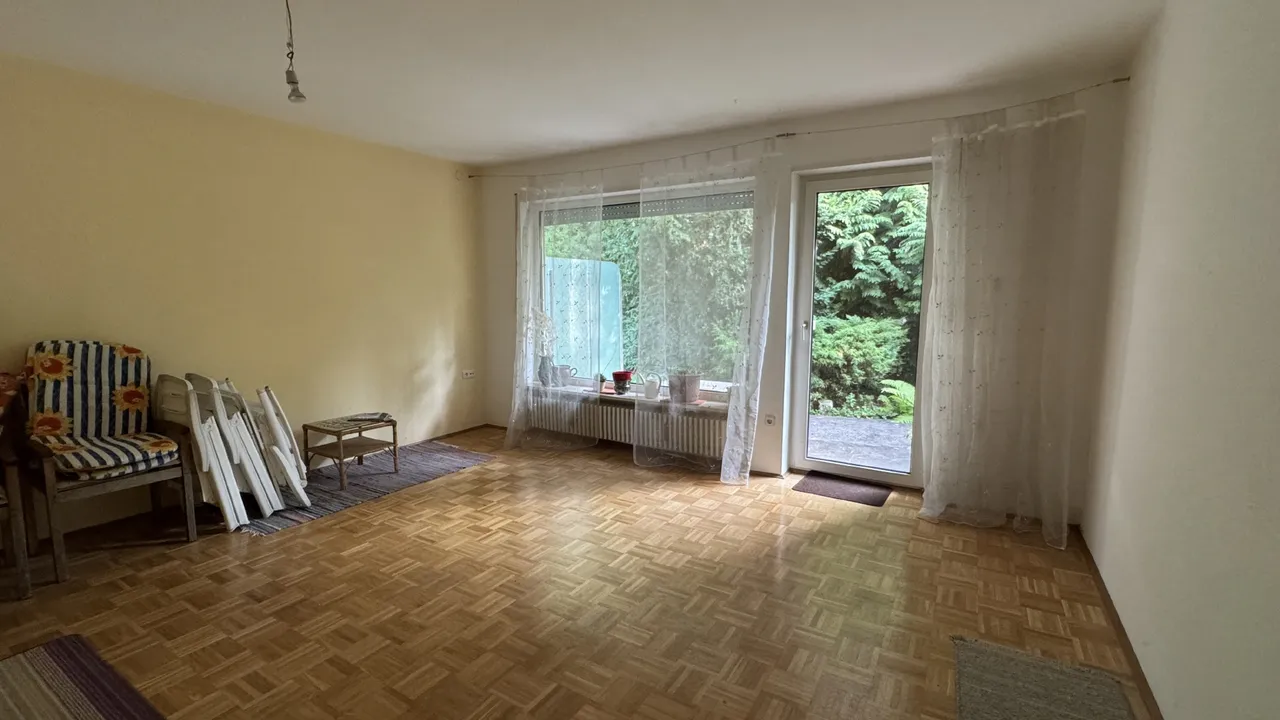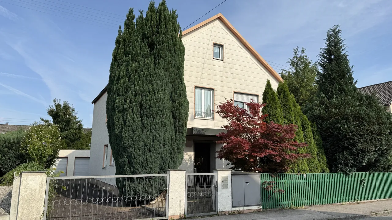 Das Zweifamilienhaus wurde ca. 1957 in konventioneller Bauweise (E+1+D mit Satteldach) errichtet, verfügt über ca. 175 m² Wohnfläche und ist voll unterkellert. Das Dachgeschoss ist mit einem Raum mit Küchenzeile sowie Bad mit WC ausgebaut. Durch die gegebene Raumaufteilung ist auch die Nutzung als Einfamilienhaus oder um Wohnen und Arbeiten zu verbinden denkbar; alle Geschosse sind über ein zentrales Treppenhaus erreichbar. Das Dach ist als Satteldach mit Pfanneneindeckung ausgeführt, die Fassade ist verputzt und gestrichen, westseitig mit Faserzementplatten verkleidet, Dachrinnen und -rohre sind in Kupfer ausgeführt. Bei den Fenstern handelt es sich überwiegend um isolierverglaste Kunststofffenster (teilweise 3-fach-verglast) mit Kunststoffrollläden an Gurtbändern, bei der Heizung um eine Öl-Zentralheizung (10.000 L Ölvorratstank) mit zentraler Warmwasseraufbereitung und Wärmeverteilung über Wandheizkörper. Es sind überwiegend Parkettböden, teilweise Teppichböden sowie Bodenfliesen vorhanden. Im Erdgeschoss sind zwei Bäder mit WCs, im Obergeschoss und Dachgeschoss je ein Bad mit WC vorhanden. Eines der Bäder im Erdgeschoss wurde in den letzten Jahren behindertengerecht eingebaut. Am Haus befinden sich zwei Garagen (automatisch betriebene Kunststoff-Sektionaltore) an die ein großer, überdachter und gefliester Freisitz angrenzt. Die Einfahrt ist mit Betonverbundsteinen gepflastert, der Garten mit Rasenfläche, Baum- und Strauchbewuchs begrünt, zudem ist ein Gartenteich mit Grundwasserpumpe vorhanden. Zusammenfassend betrachtet bietet das renovierungs- und modernisierungsbedürfte Gebäude mit ca. 922 m² Grund viel Platz, ein großzügiges Raumangebot und ist auch für Handwerker und Selbstrenovierer geeignet. Das Objekt ist nicht vermietet.