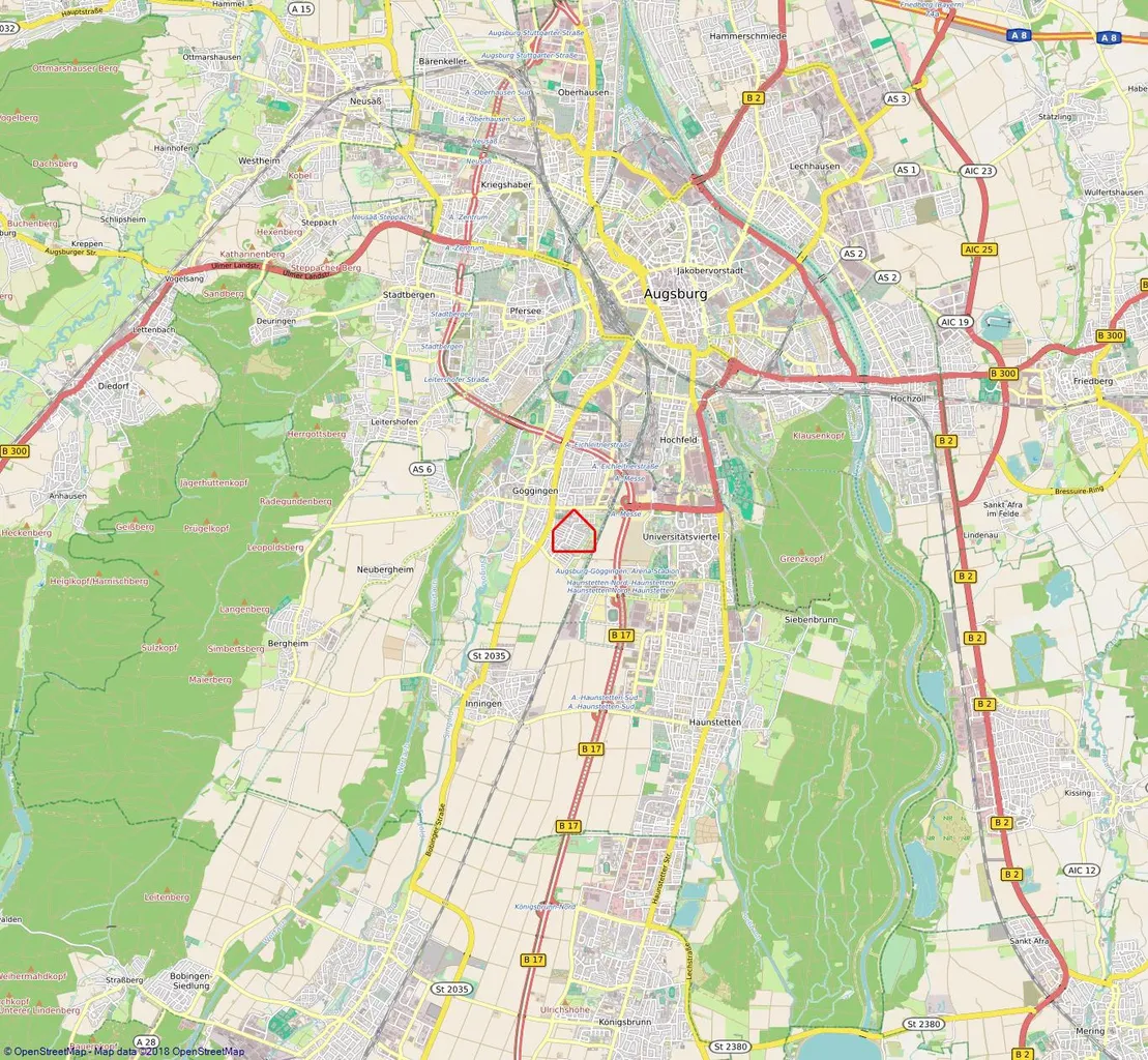 Die Wohnanlage liegt im bevorzugten Stadtteil Göggingen - mit direkter Nähe zur Universität, ca. 10 Minuten mit dem Fahrrad. Ideale Infrastruktur und sämtliche Einrichtungen zur Deckung des täglichen Bedarfs wie z.B. Einkaufsmöglichkeiten, Kindergarten, Schule, Ärzte und Apotheke in der direkten bzw. näheren Umgebung. Sehr gute Anbindung durch öffentliche Verkehrsmittel (Haltestelle Stadtbus Linie 41, ca. 15 Minuten Fahrzeit zur Universität oder ca. 25 Minuten Fahrzeit zur Augsburger Innenstadt). Durch die Anschlussstelle der B17 ist auch die Anbindung für Pendler nach München (BAB A8 / A96) sehr günstig.
