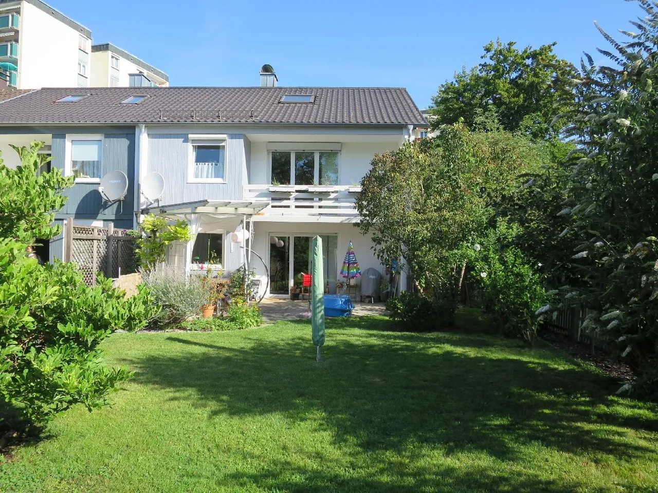 Dieses gepflegte Reiheneckhaus bietet mit ca. 110 m² Wohnfläche, vier Zimmern sowie einem ca. 400 m² großen, schön eingewachsenen Garten ein ideales Zuhause für die ganze Familie. Der Wohnbereich ist mit Parkettboden ausgestattet, während Küche, Flur und Windfang gefliest sind. Der dem Wohnzimmer angrenzende Nebenraum bietet flexible Nutzungsmöglichkeiten, z.B. als Arbeits- oder Esszimmer. Das helle Tageslichtbad umfasst eine Badewanne mit Glasduschabtrennung, ein Waschbecken sowie ein WC. Eine zum Haus gehörende Einzelgarage mit Stellplatz davor ist im Mietpreis enthalten. Die vorhandene Einbauküche inklusive Elektrogeräten kann vom Vormieter abgelöst werden. Ein Bezug ist ab dem 01.04.2026 möglich. Der Energieausweis ist beantragt und wird kurzfristig zur Verfügung gestellt.