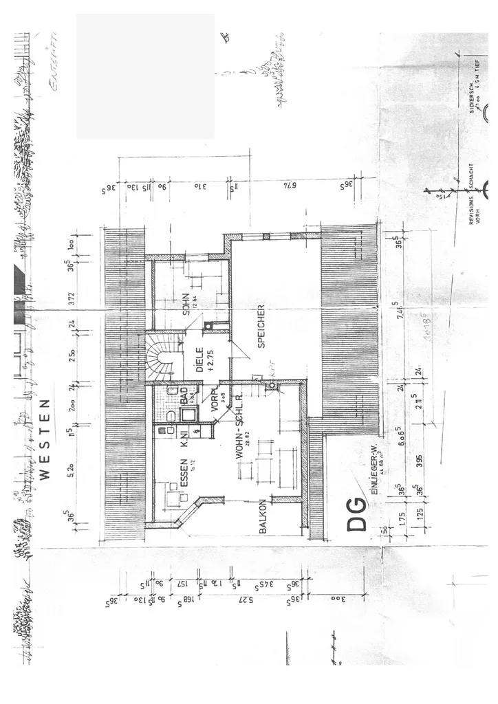 DG: Kinderzimmer, Diele, großer Speicher; Einliegerwohnung: Wohnen, Schlafen, Kochen, Essen, Duschbad mit Waschbecken und WC, Vorplatz, West-Balkon;